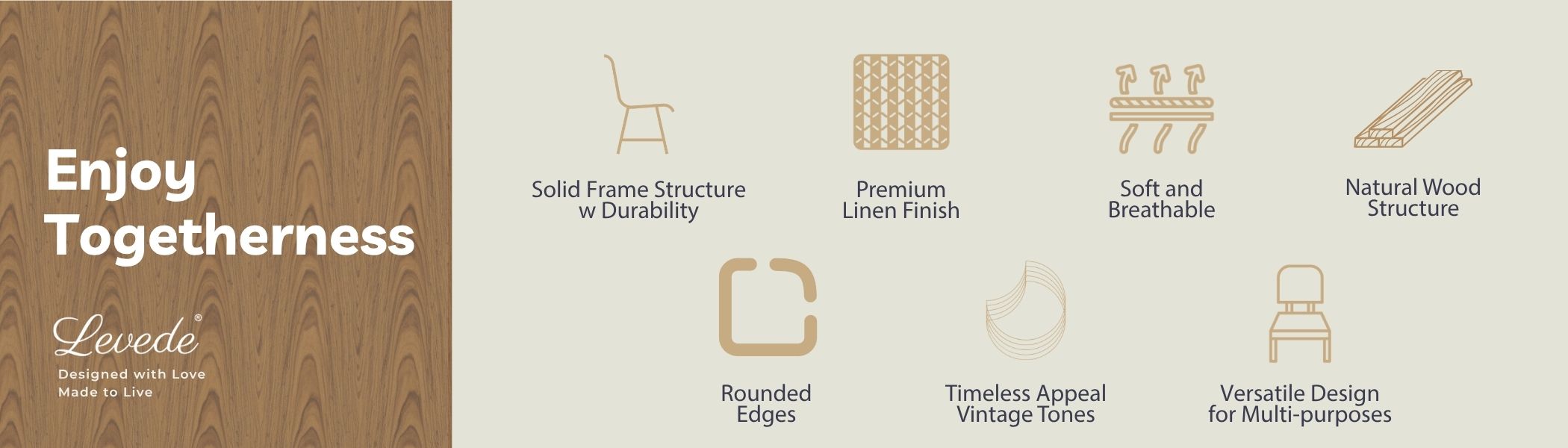 Material: Rubber wood timber + foam + synthetic linen fabric